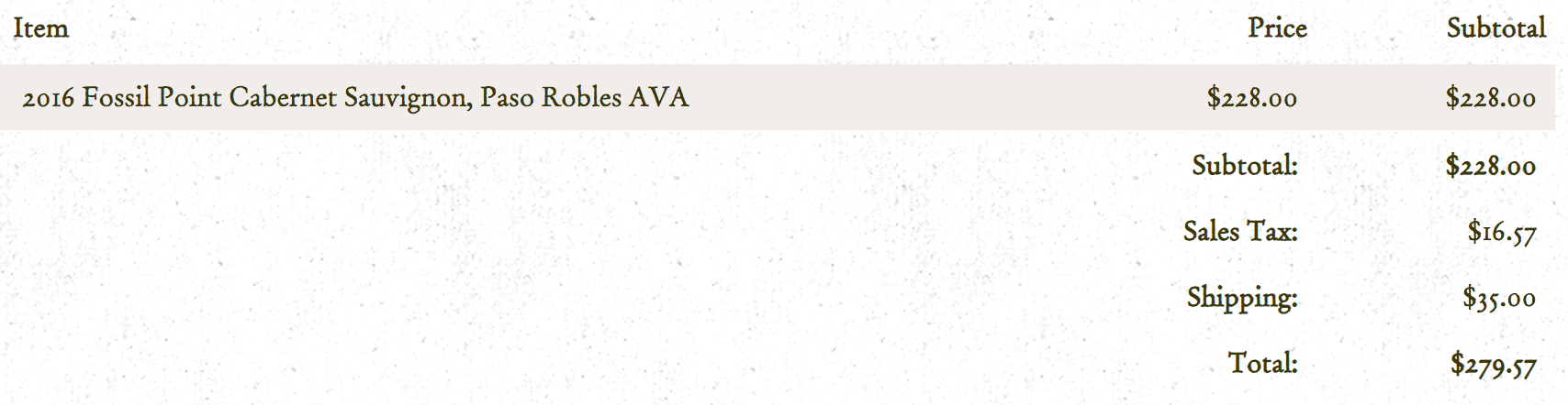 2016 Fossil Point Cabernet Sauvignon - $35 = 23.32%