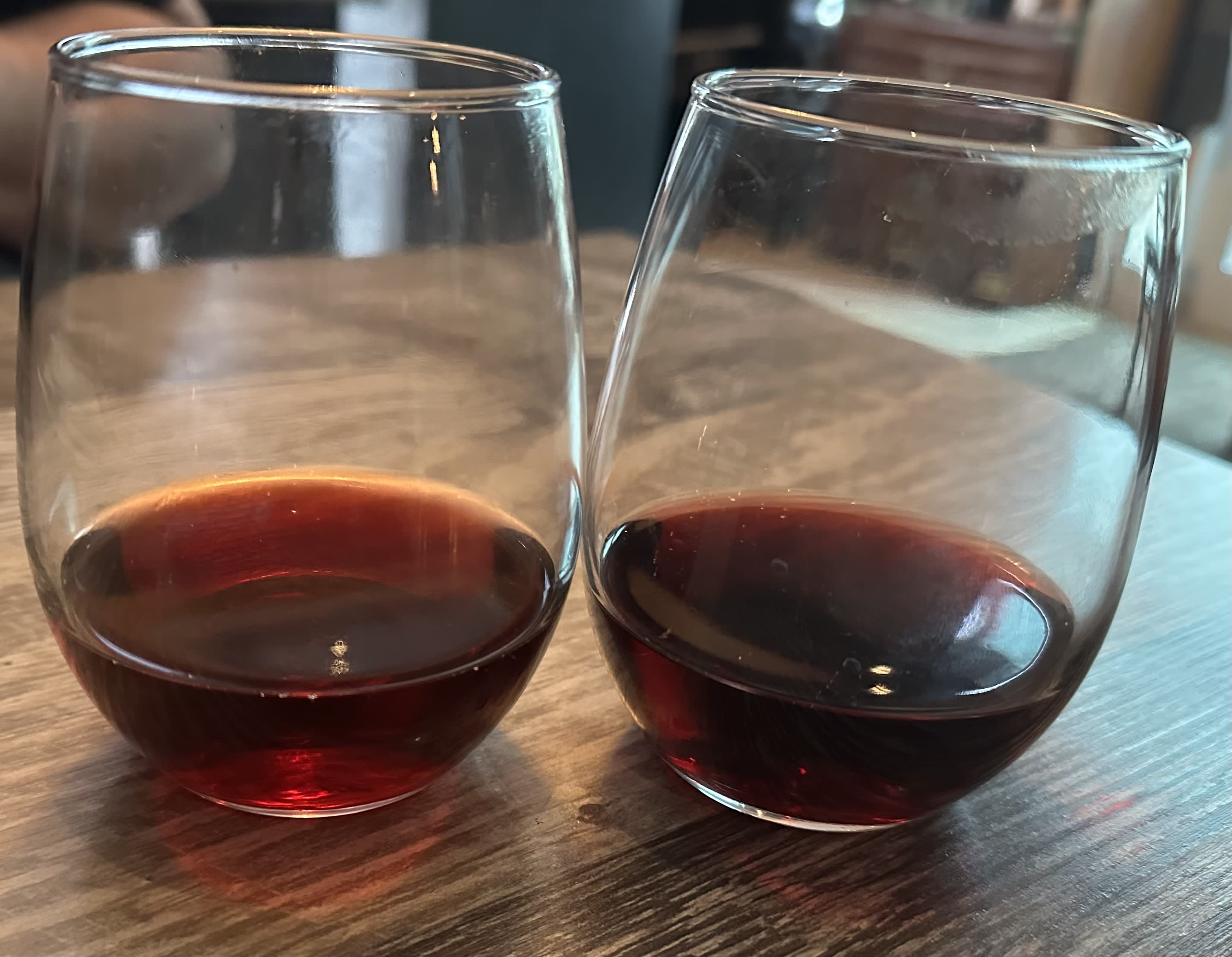 The Invivo poured a pale, garnet color. The Our Wines was clearly darker, showing a bit more body as well.