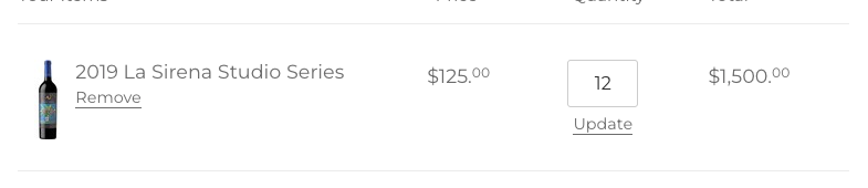 Case of 12 for $899.99 $75/bottle + $1/bottle shipping