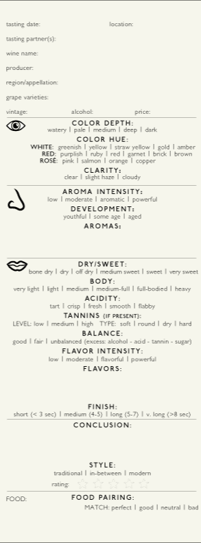 Here’s a screenshot of the De Long tasting note sheet. Sorry if the resolution is a little blurry, but hopefully it helps provide some insight.