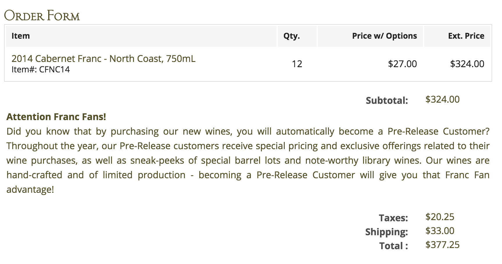 2014 Lang & Reed Cabernet Franc - $30 = 14.28%