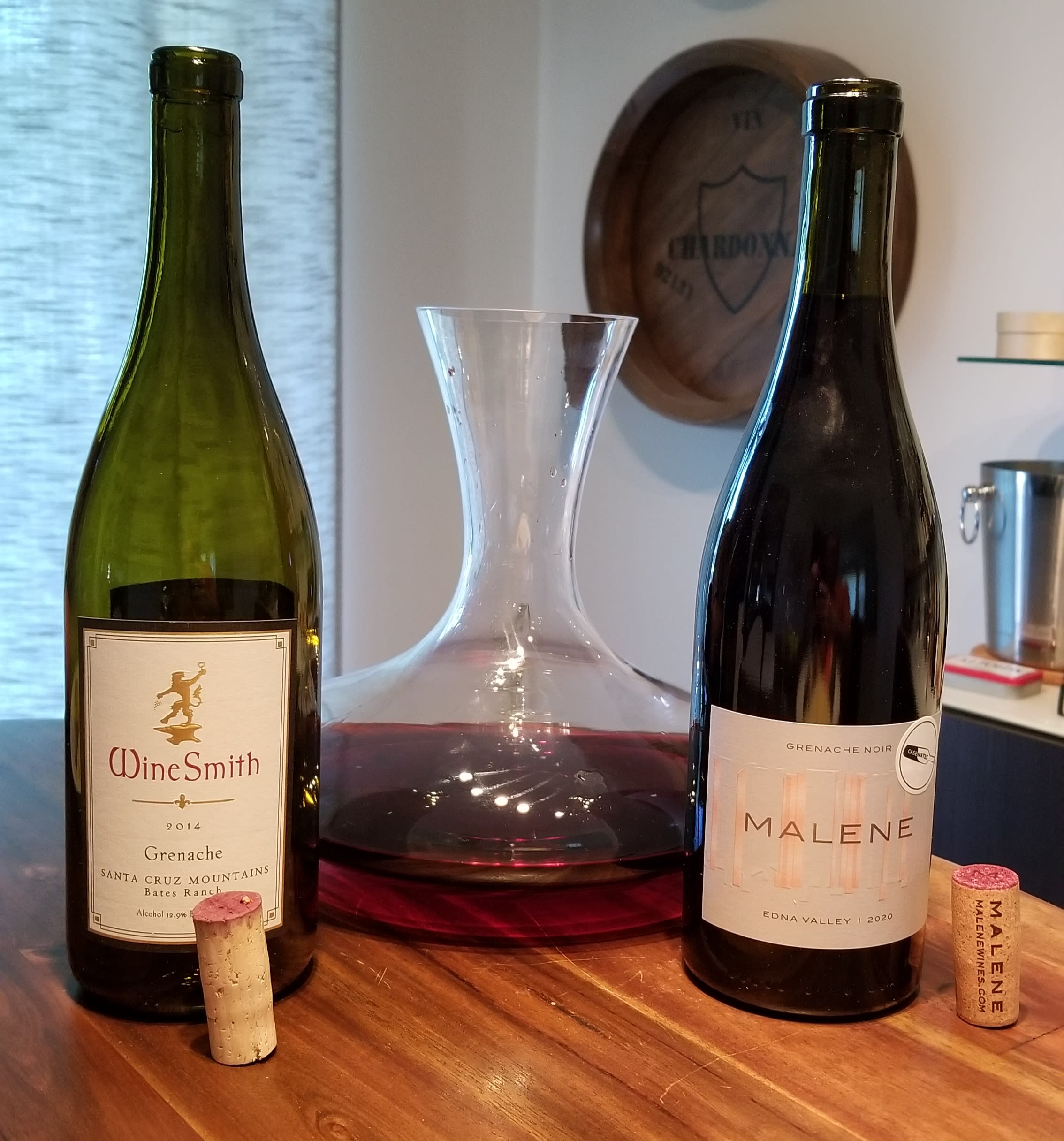 I know this isn’t exactly a fair comparison, but I decided to open a 2014 WineSmith Grenache as a fun experiment to compare/contrast the two wines.