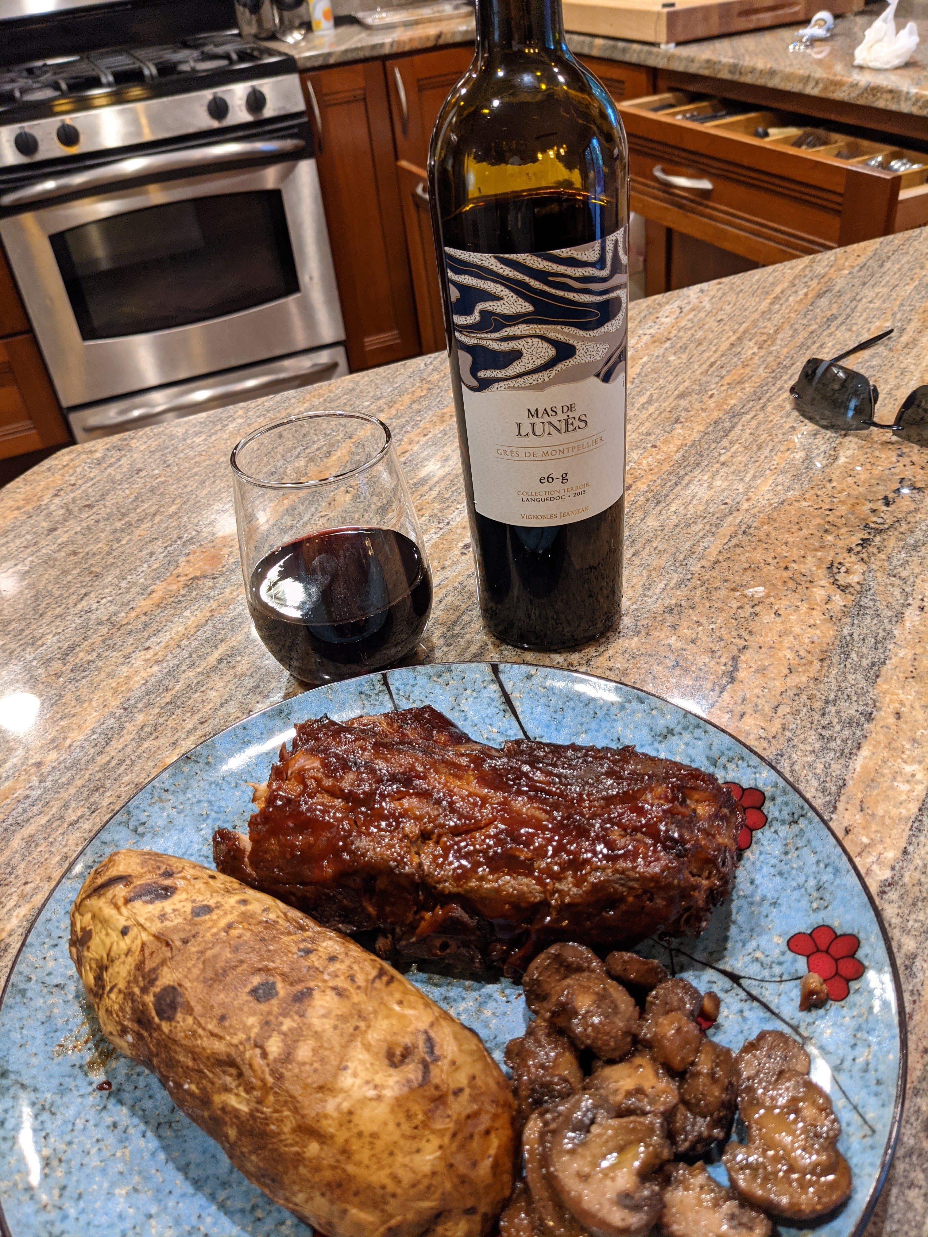 I paired it with a half-slab of BBQ baby back ribs, baked potato and sauteed mushrooms. YUM!