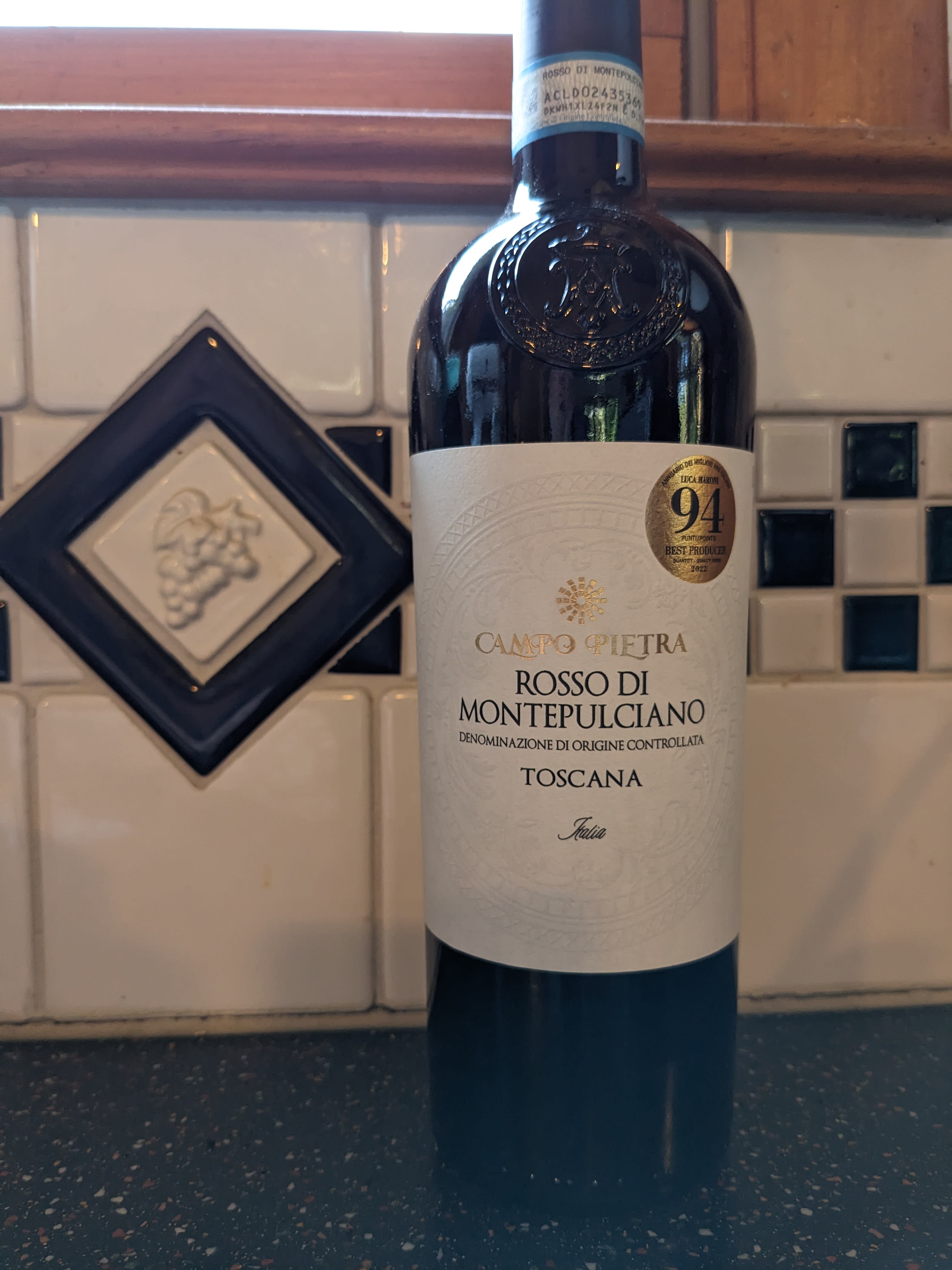 Late follow-up but I want to put this out there. A day in the splash decanter and the Rosso di Montepulciano sings. Don’t dismiss. $15 bucks pretty good deal.
