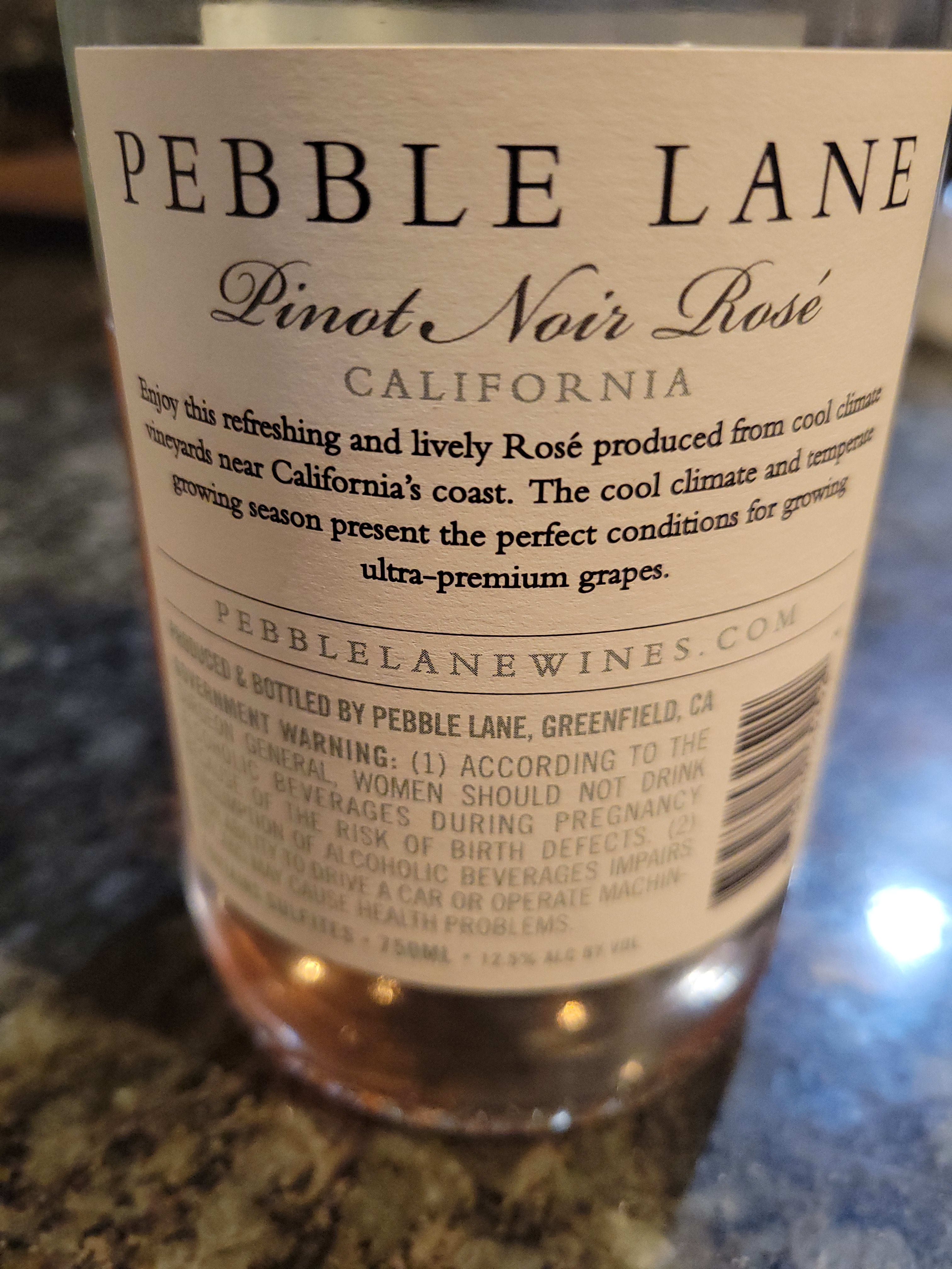 Pebble Lane Pinot Noir Rosé - $30 = 25.00%