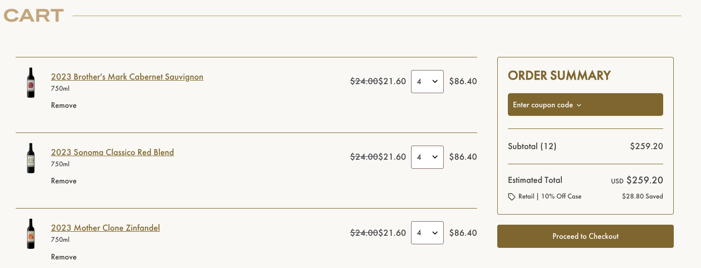 Case of 12 for $149.99 $12.50/bottle + $1/bottle shipping