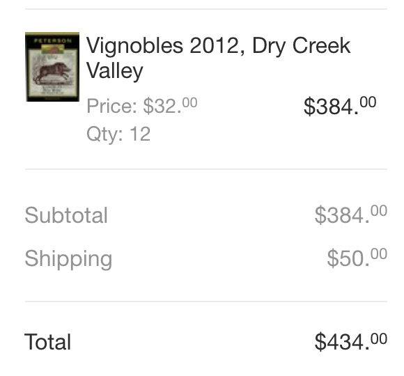 Case of 12 for $174.99 $14.58/bottle + $1/bottle shipping