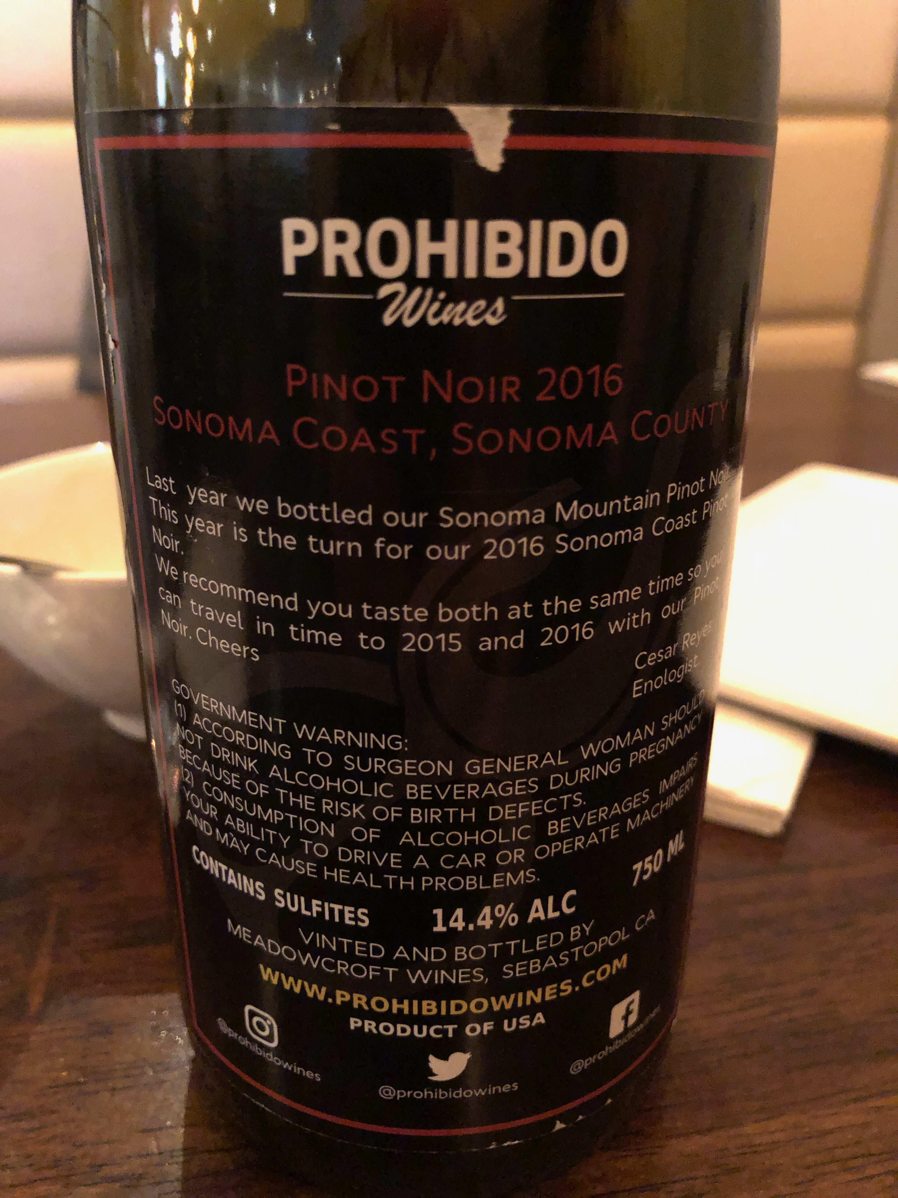 2016 Prohibido Pinot Noir - $40 = 22.21%