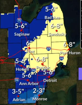 @baldwino0 We weren’t privileged to show on the map (just left of the I-94 sign) but still getting 2-4”