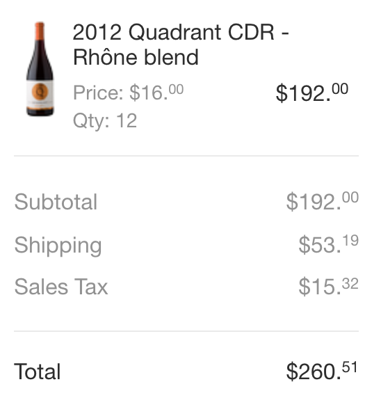 2012 Quadrant CdR Rhône Blend - $15 = 15.00%