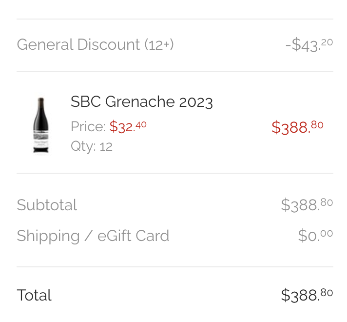 Note that winery price comparison of $777.60 based on 24 bottles not 12!