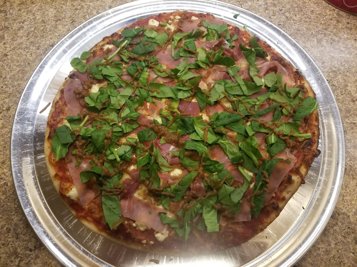@capnjb I made a red pizza with light mozzarella and goat cheese, baked it, and then topped it with prosciutto, spinach, and a fig glaze (3 dried figs in a blender with just enough water to liquefy it). Fig jam would have worked well if I had it.