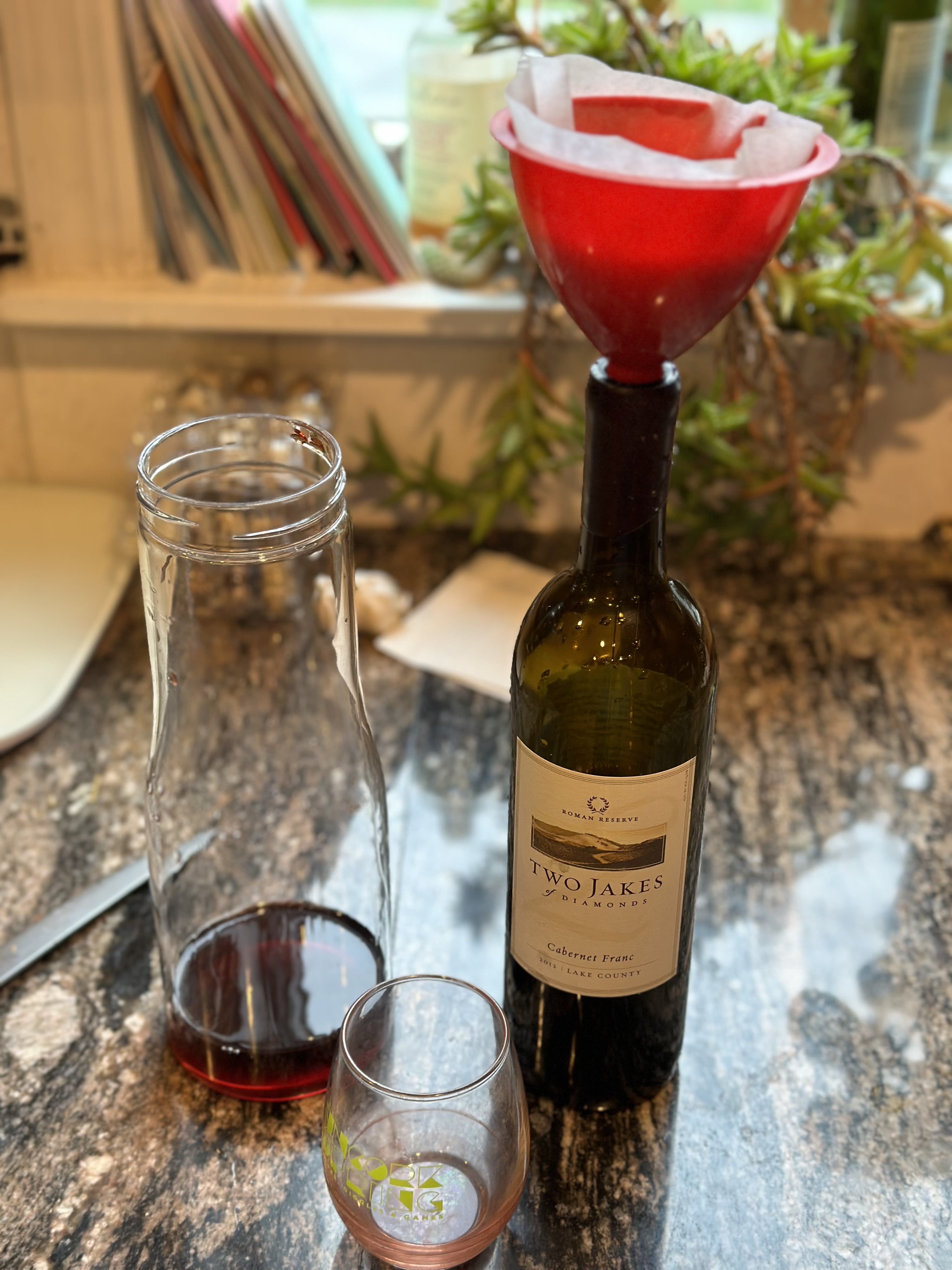 FWIW (probably not much), I also played along at home. 2012 RR CF but from a previous offer. Poured it through a filtered spout into a pseudo-decanter and set the lid on top sideways to allow air in but somewhat less than fully open. The wine actually tasted ok on Day 1, probably would have opened up nicely in the glass but I just took a small taste. Let it sit 2 days and revisited. Like