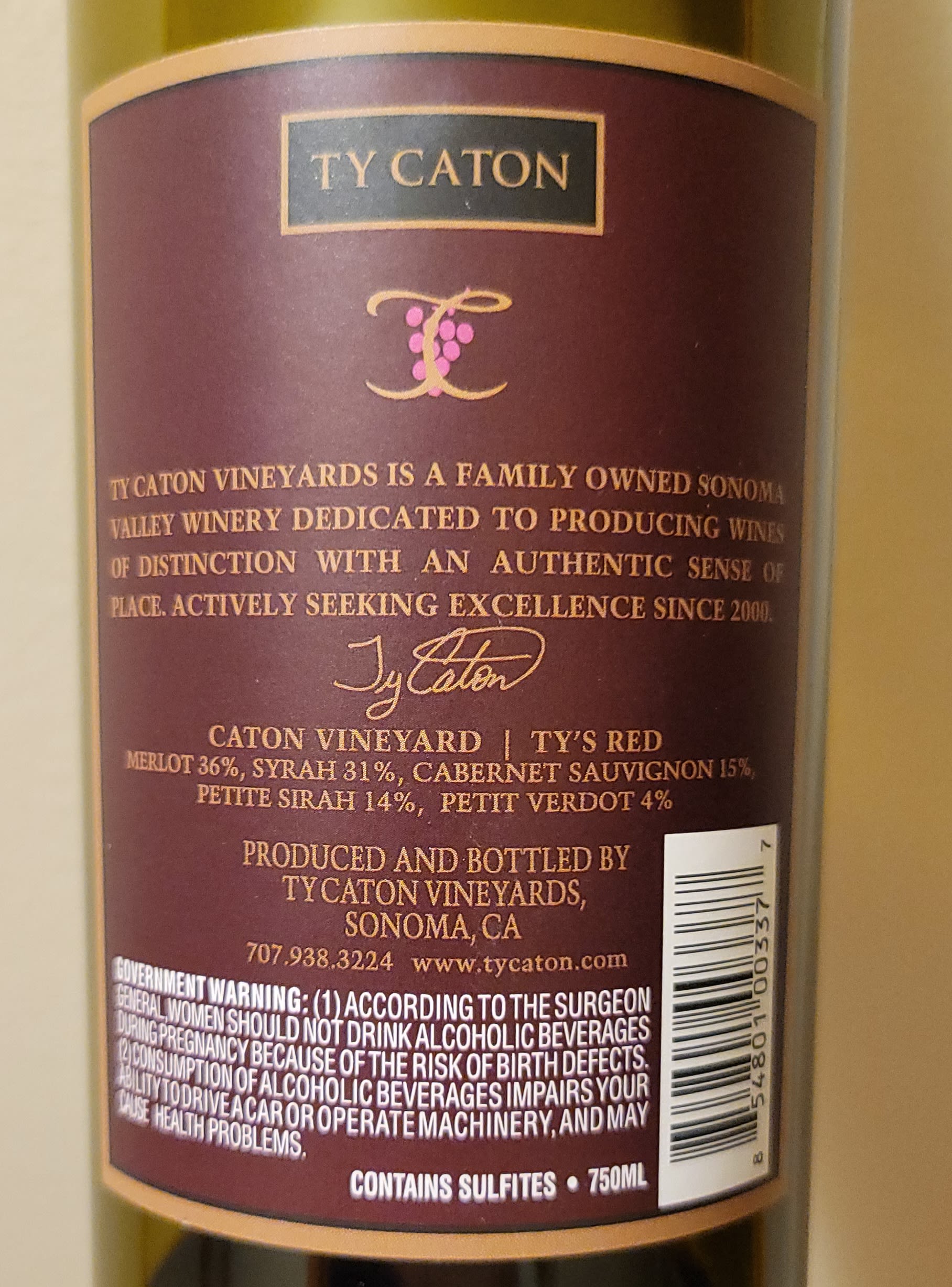 2021 Ty Caton Vineyards Estate Ty’s Red - $30 = 12.49%