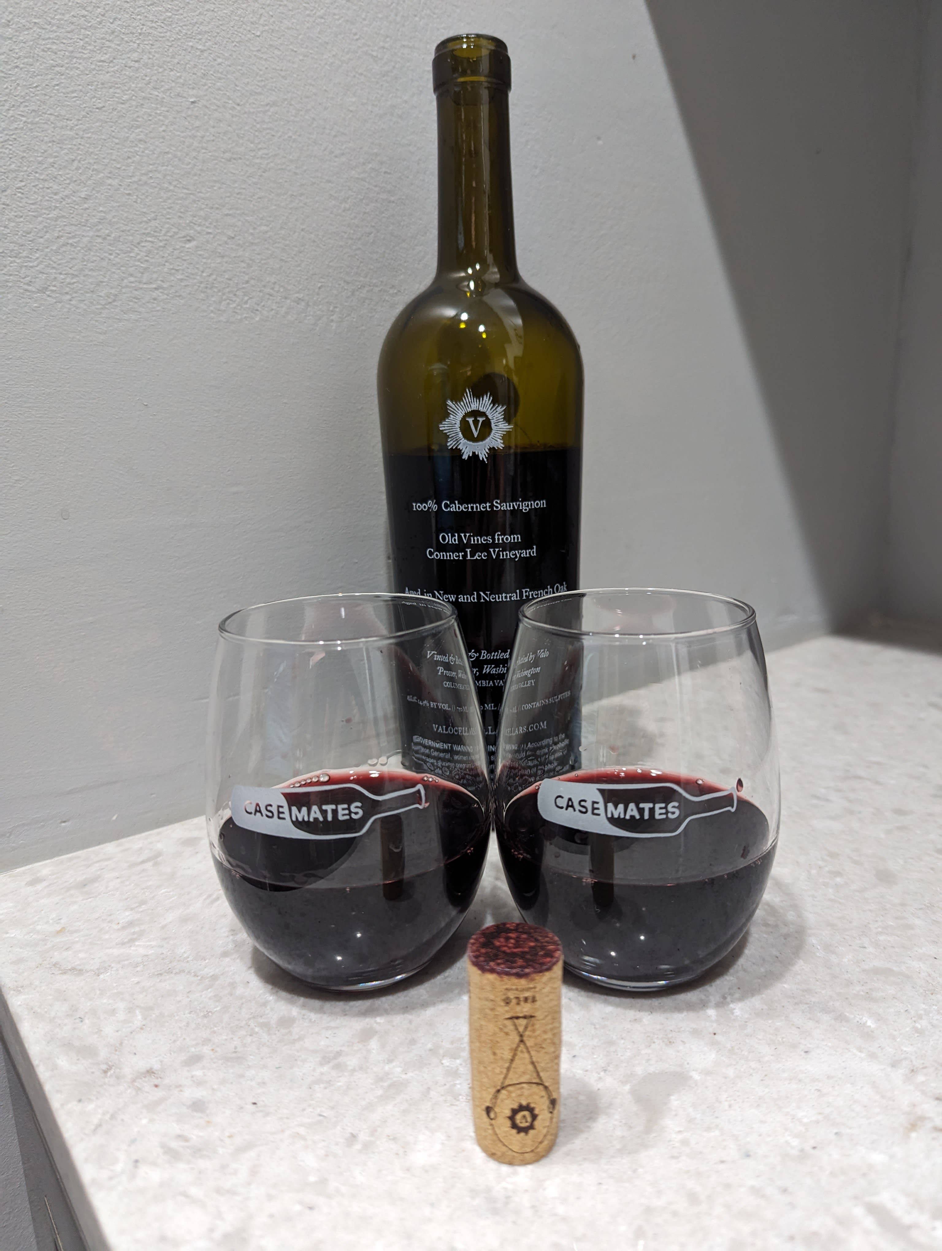 I was pleasantly surprised to get an email middle of this week that I had a bottle of wine on offer if I was interested - is it ever a question?! It is my wife’s birthday this week, so no better way to kick it off for her birthday week (big 4-0!!) - especially after an especially long week at work for both of us. Opened the box when it arrived to a bottle of Valo 2019 Cabernet Sauvignon. And the cutest little casemates glass that I love!!
