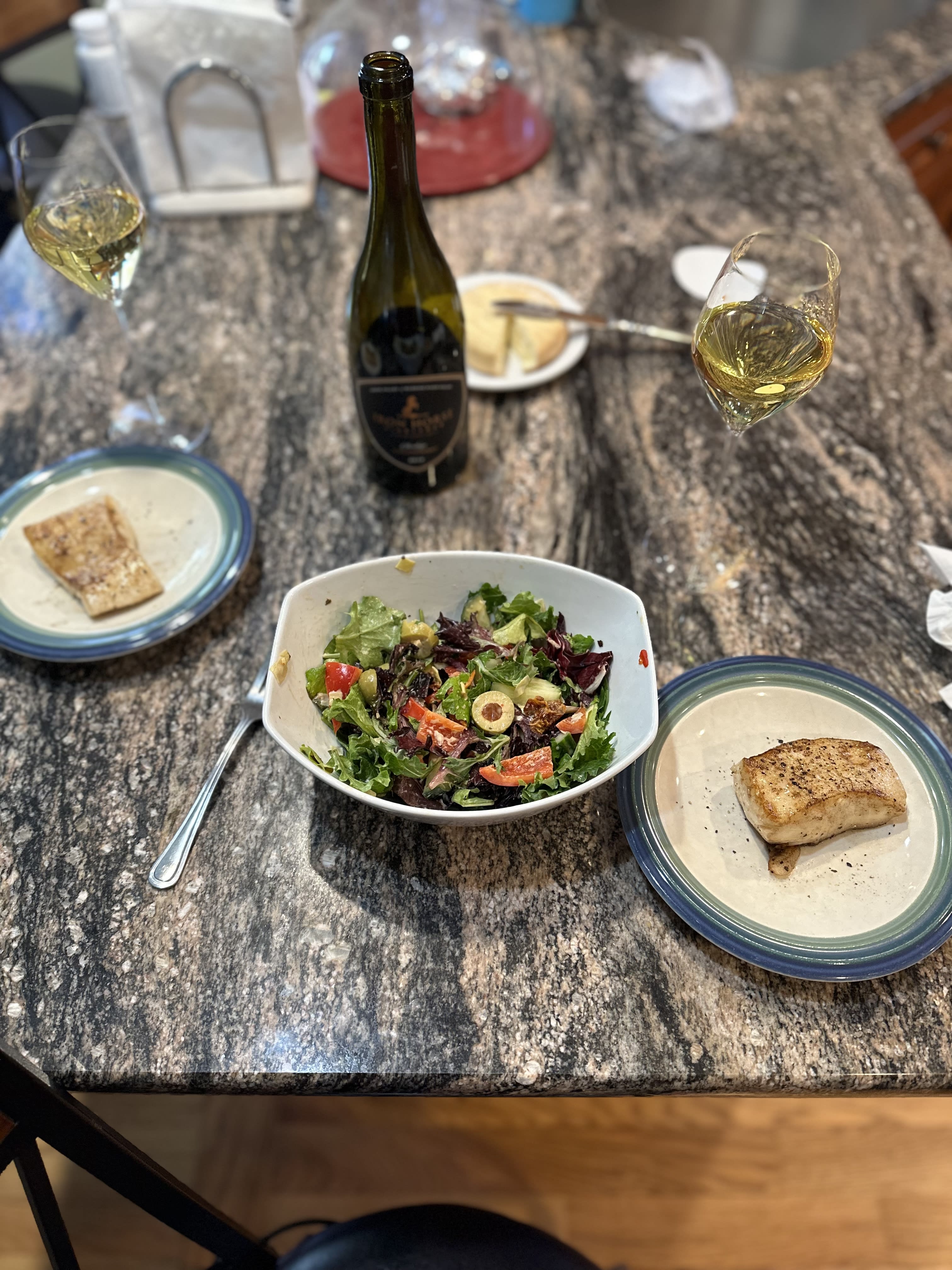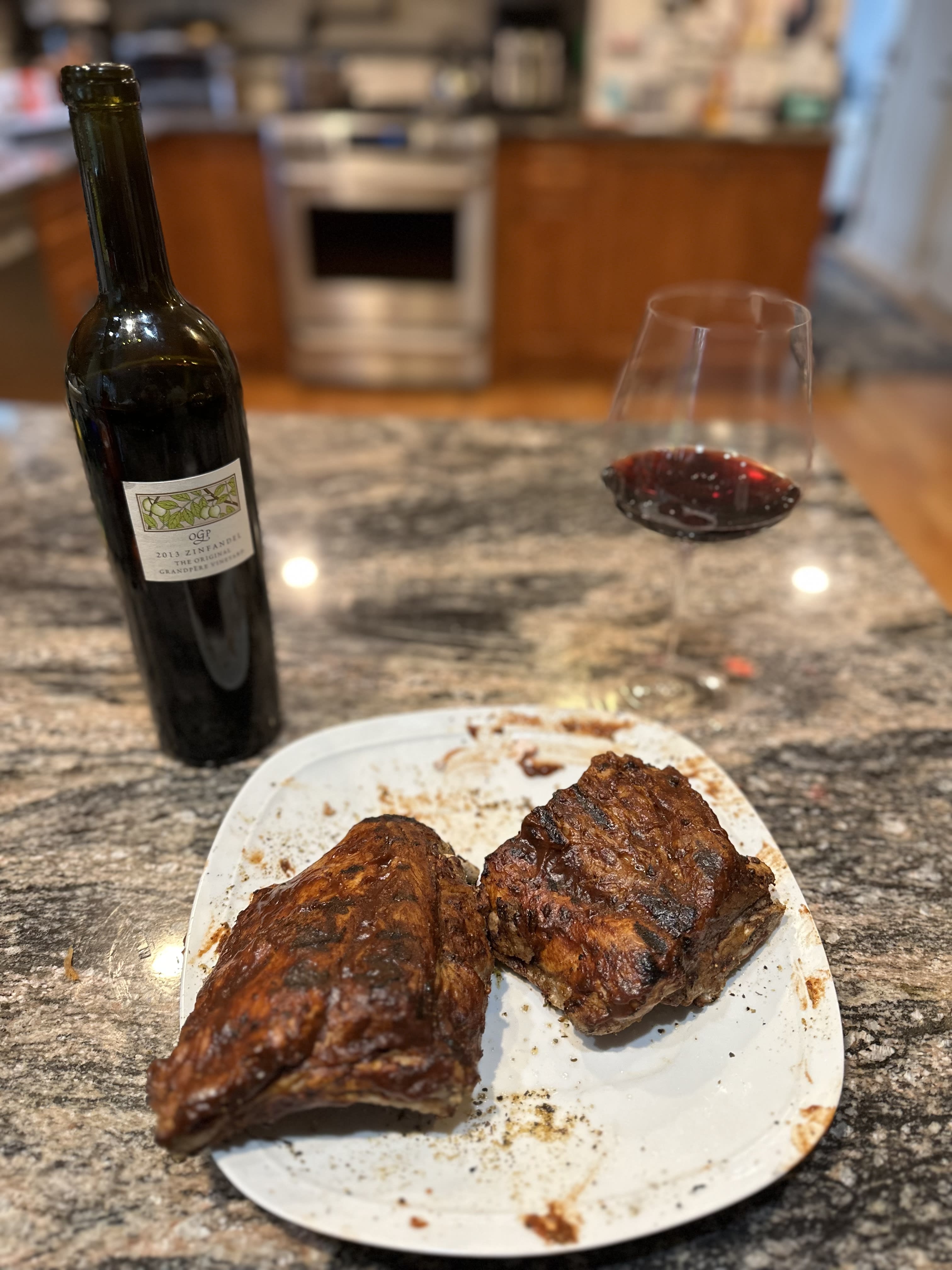First (chilly) patio dinner of the season. Our 34th anniversary. Simple since the horde (19) come over for Easter dinner. Love this ‘18 Pedroncelli Mother Clone.