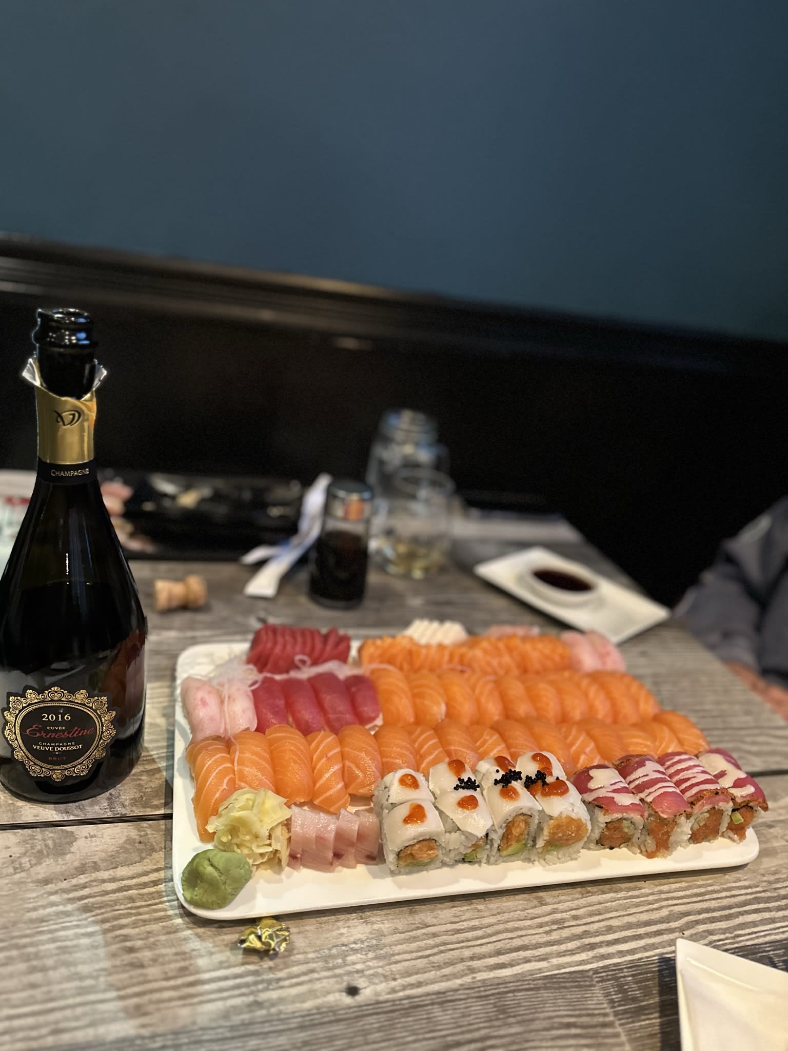 Great day of golf but change up for dinner, miso cod and champagne. Very happy!