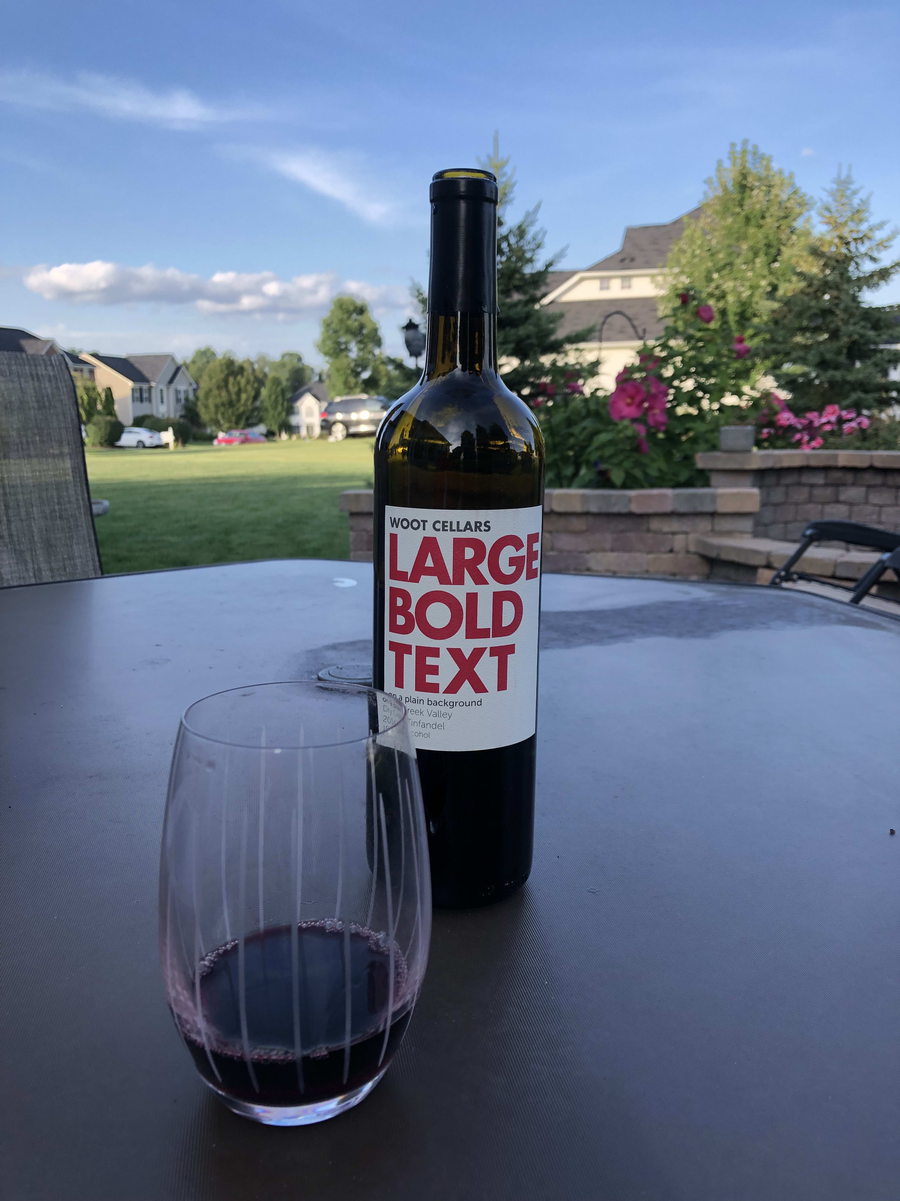 2014 LARGE BOLD TEXT from the other place, with smoked pork chops and fresh Ohio corn on the patio. With the hummingbirds, finches and cardinals around on a perfect evening, a great wine and it was a steal!