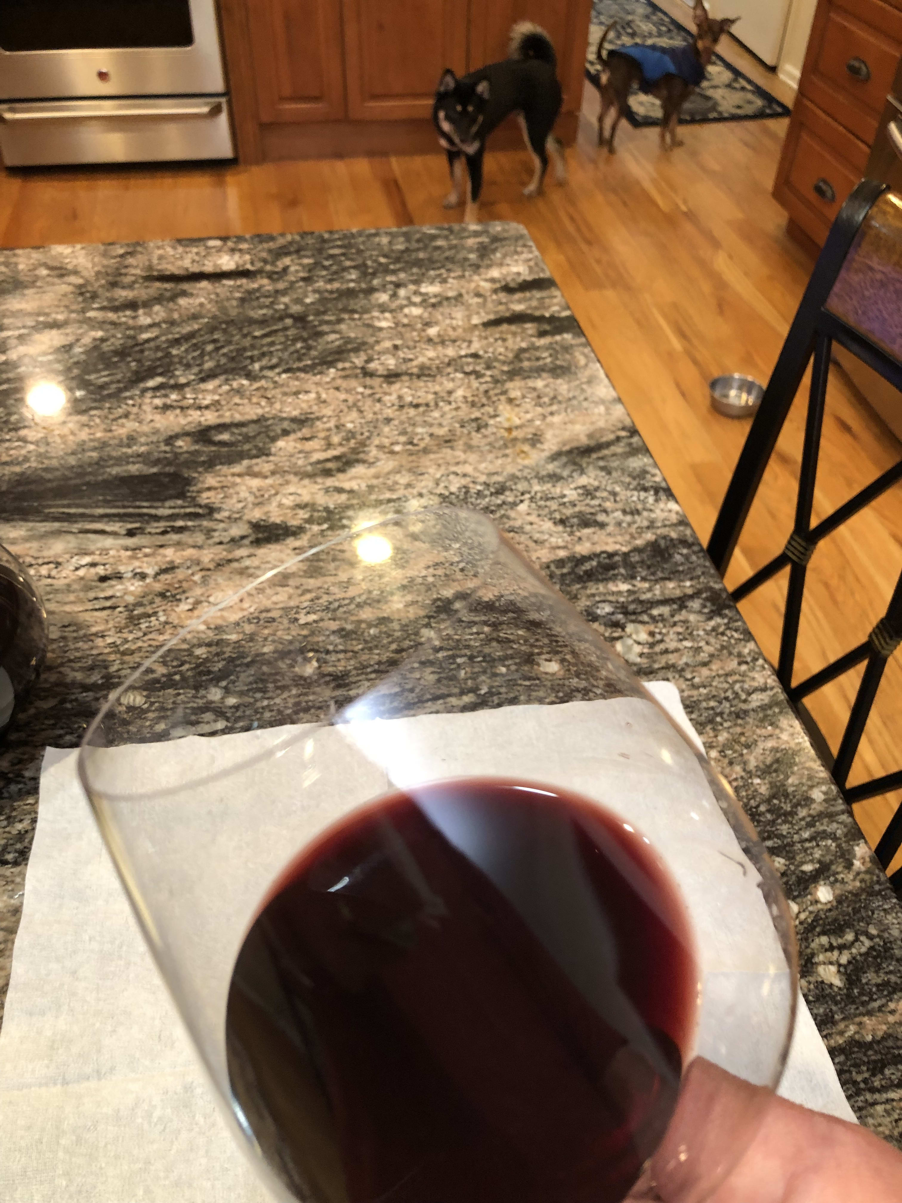 I thought glass “A” might be the cab due to the chalky texture, but it ended up being the merlot.