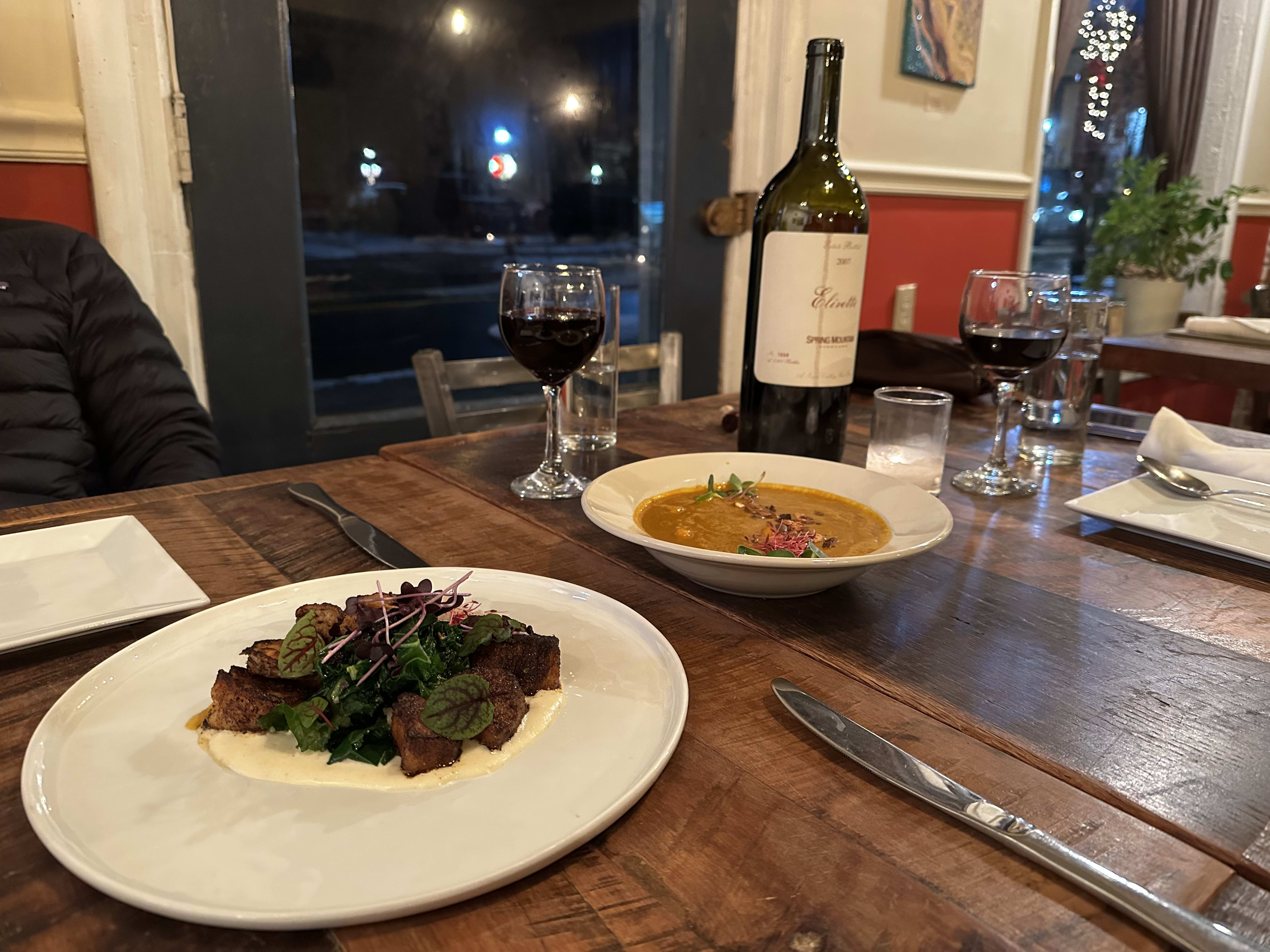 @ScottW58 Small world, we almost ordered a Kelley Fox at dinner tonight, but the waiter suggested a Sandlands Table Wine instead, and we went with it. With house-made Mortadella, polenta bread, in-house dry-aged sirloin, and grilled pea shoots. Oh and a very thin, grilled lasagna, that barely survived long enough for a photo.