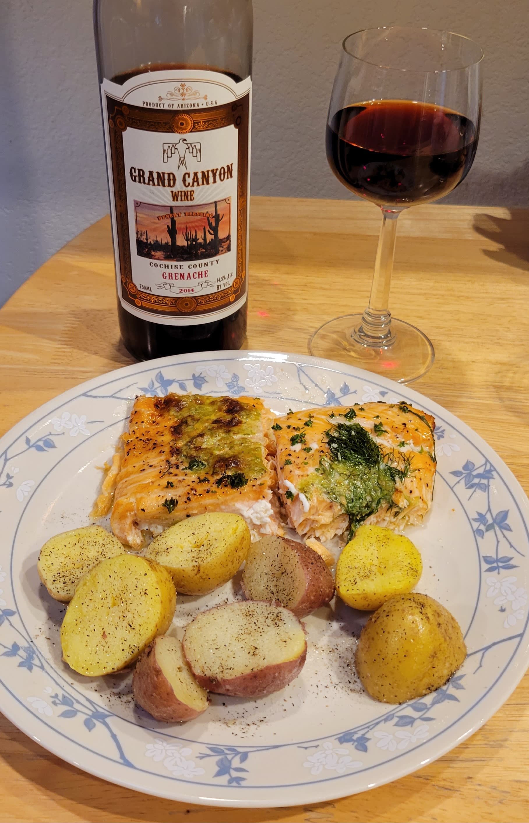 Salmon, potatoes, and a local Grenache during my visit here in AZ.