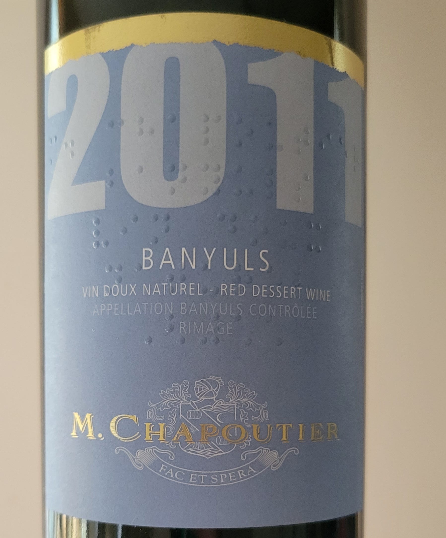 I grilled some steak and finished off the Wellington Mohrhardt Ridge cab from last night. Then decided to open up this unusual bottle that I bought ages ago. It’s a red dessert wine with braille on the label. Oh and it’s 17% abv.