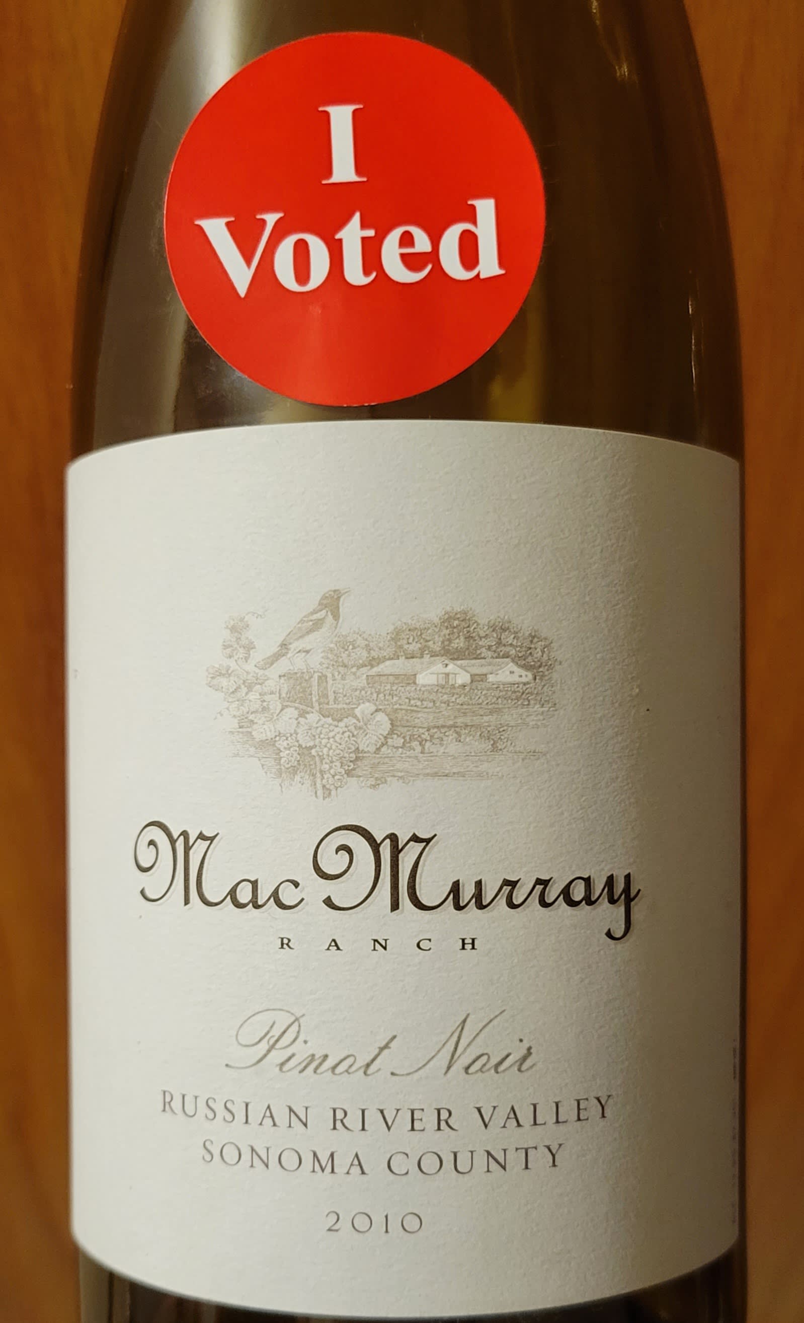 2012 Moniker Pinot Noir - Mendocino. Not the least bit of age degradation. Mushroom and umami on the nose. Medium bodied with smooth oak and light umami on the palate. Delightful.