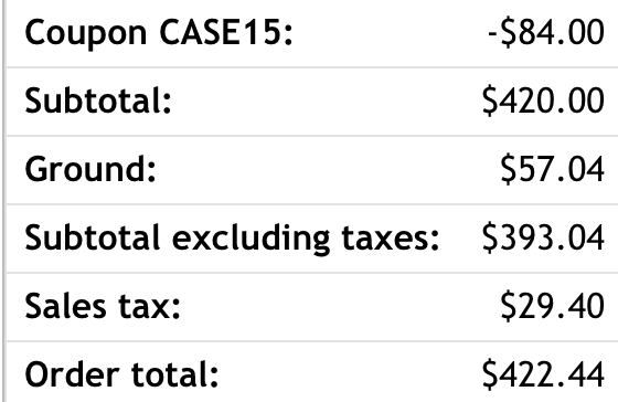 @chipgreen Thanks, Chip, for this in-depth analysis. Stop me if I’m off-base, but it seems to me that the tricky part is to compare the shipping costs we can offer with those available at CaseMates. These are fixed at CaseMates, but for us you need to calculate an average cost depending on the buyer’s location. I think the CaseMates deals are always cheaper than standard UPS, but it’s going to vary a lot. Unless I’m wrong, this difference will always increase the benefit from what you calculated, so maybe my calculation of 42%/58% isn’t too far off.