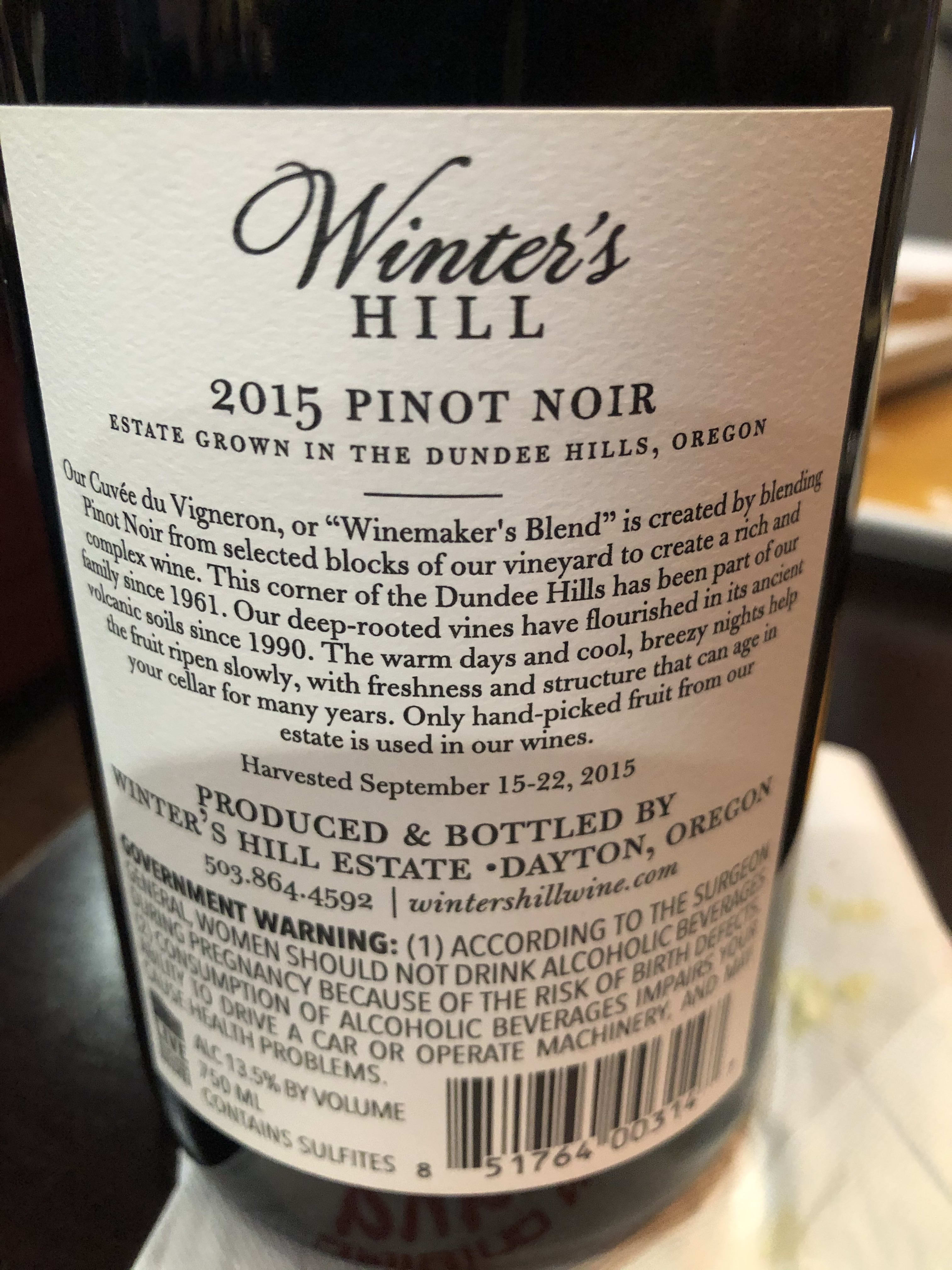 2015 Winter’s Hill Pinot Noir, Cuvee du Vigneron