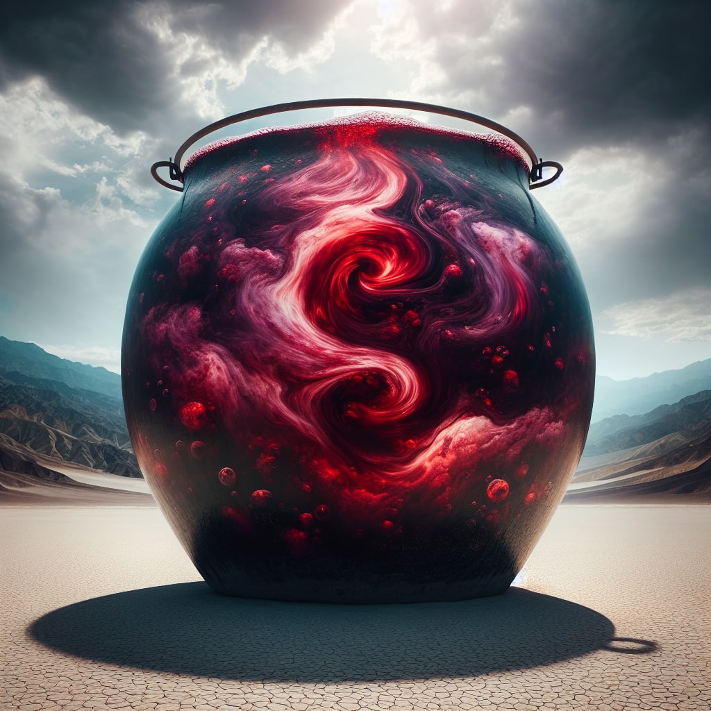 /showme huge-obscure-pot sloshing over with red wine in death valley